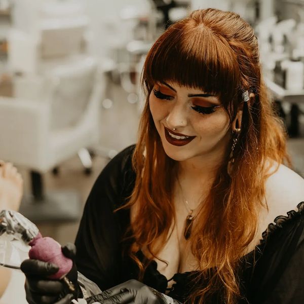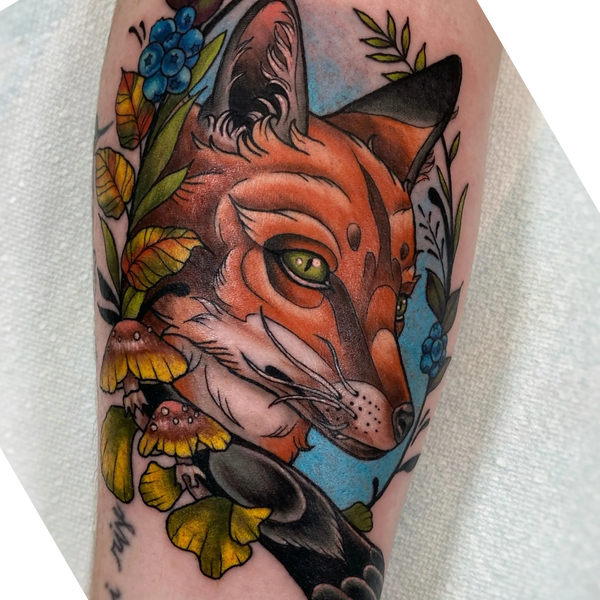 Meet our owner, Erin! Tattooing since 2019, she is well versed in most styles, but she especially enjoys tattooing color realism, neotrad, fine line, and glitter tattoos. She loves bringing the wonder of magic and fantasy into her work as well!